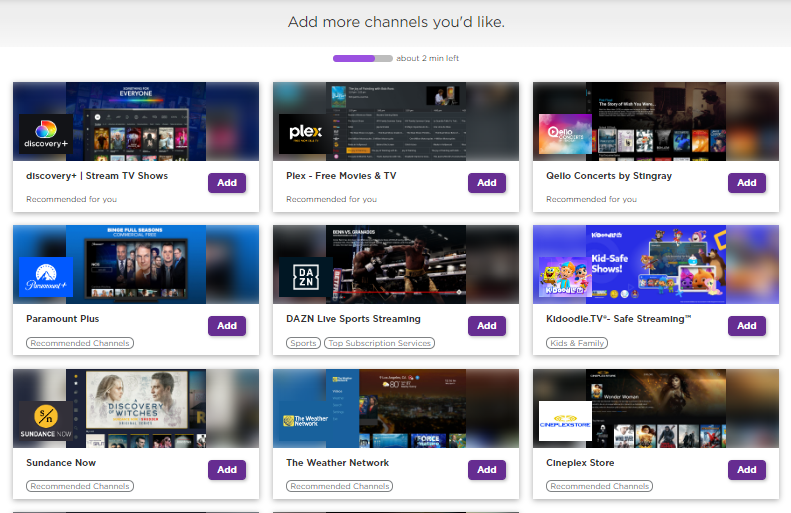Step 5. After a few moments, your Roku device receives the list of the TV channels available with your package.