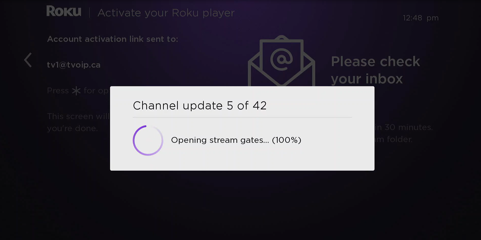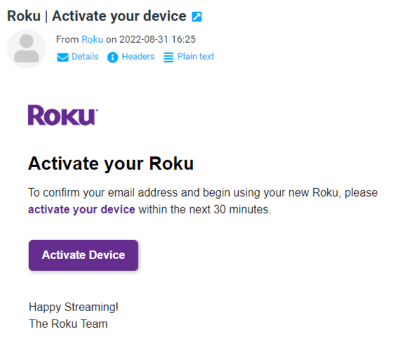 Activate your Roku device via computer or smartphone. It may take a few minutes to receive the activation email.