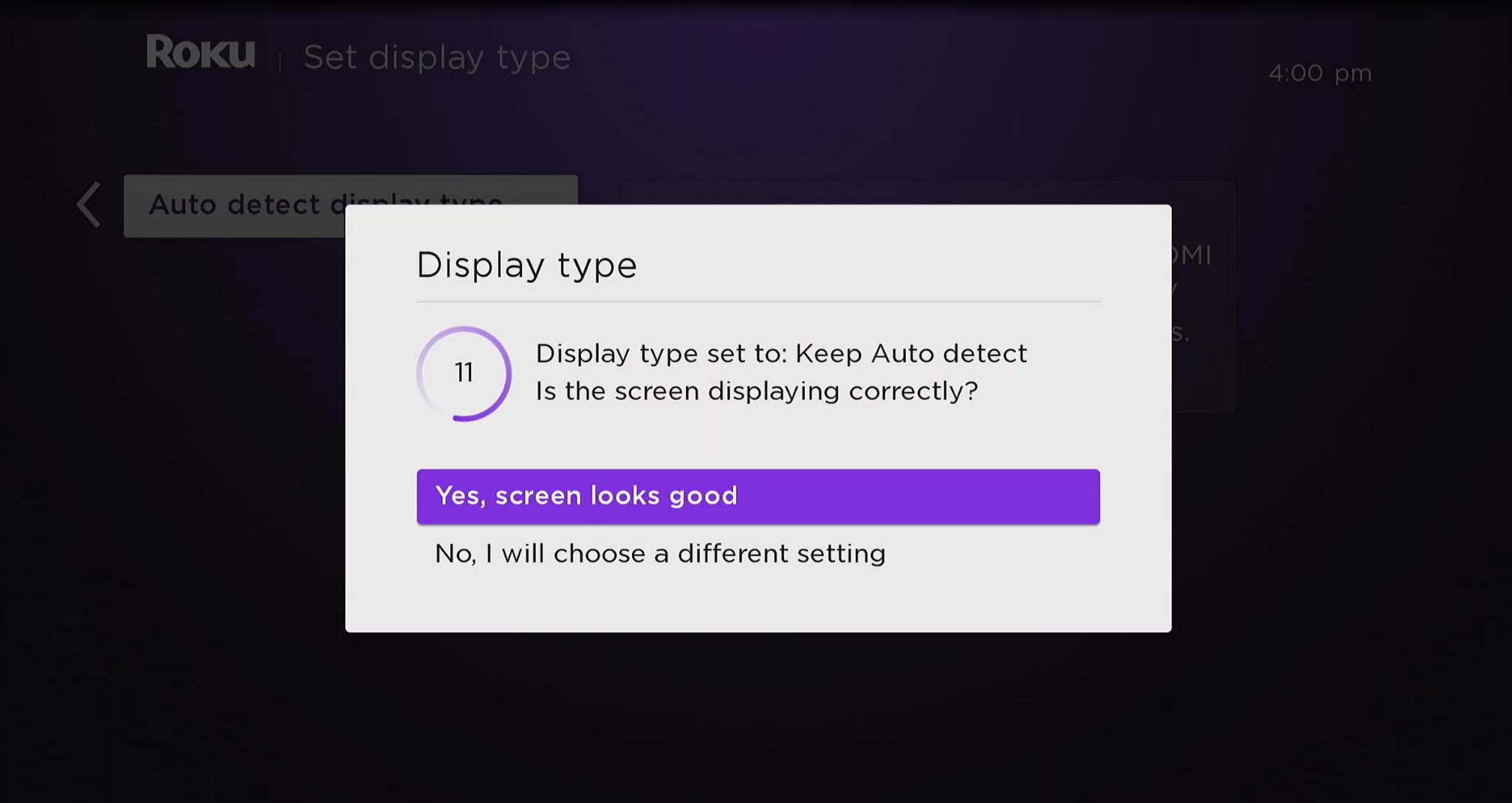 Your player will analyze the HDMI connection and select the most suitable video setting. Once the HDMI connection check is complete, highlight “Yes, screen looks good” and press OK.