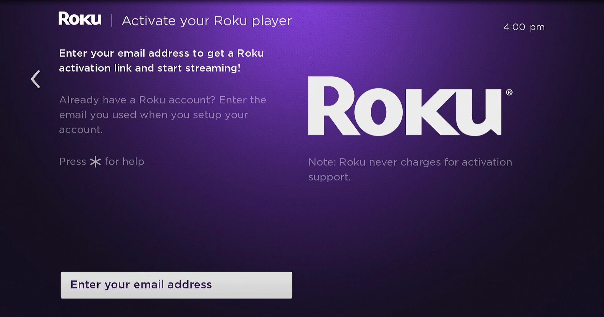 Step 4. To activate your Roku unit, the device must be synced with a Roku account. When prompted on the screen, highlight “Enter your email address” and press OK. Enter your email address to create your account. Roku will send an activation link to your email within a few minutes.